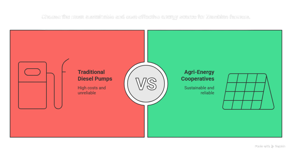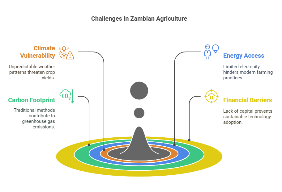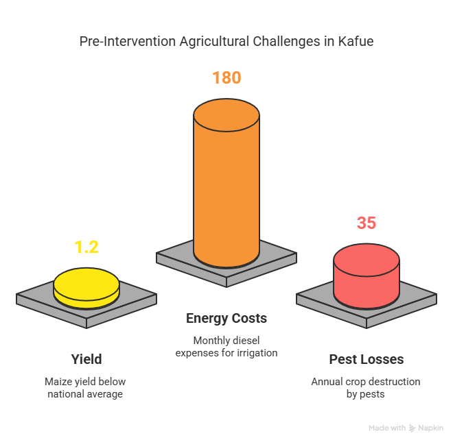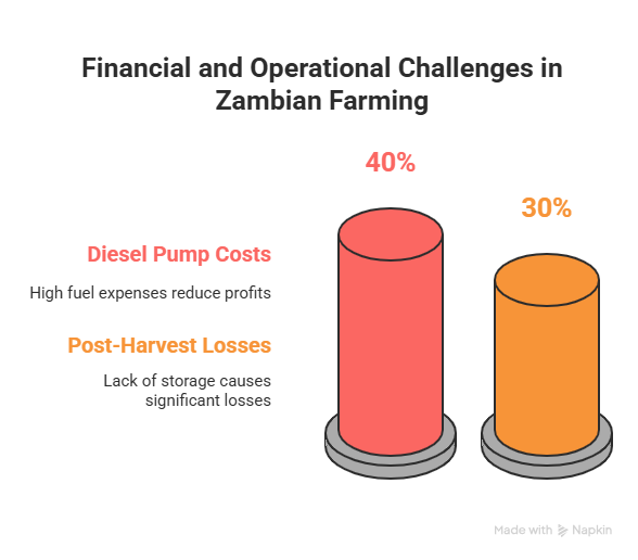 Zambia’s rural farmers face crippling energy costs, with 60% relying on costly diesel pumps and experiencing erratic grid access. This situation stalls productivity and traps communities in a cycle of poverty, making it difficult for farmers to thrive and invest in their futures.