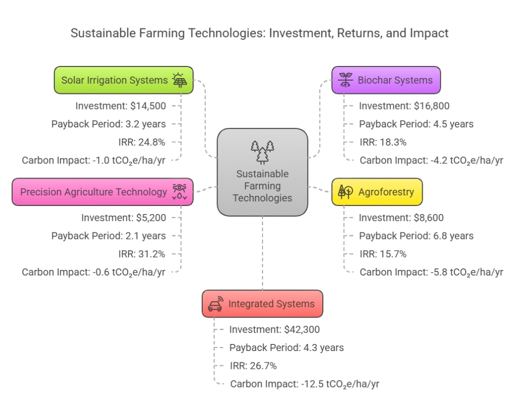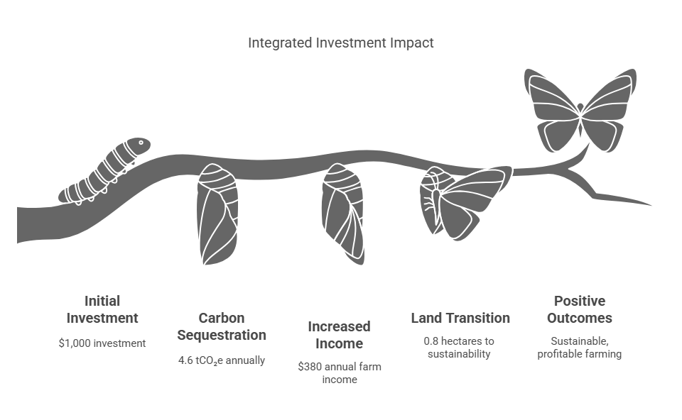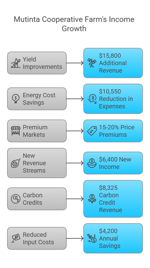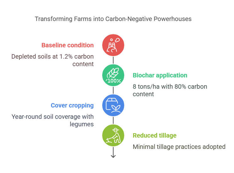 This income growth is particularly significant because it demonstrates that carbon-negative farming can be financially superior to conventional methods, creating a powerful economic incentive for sustainable transition beyond environmental benefits.