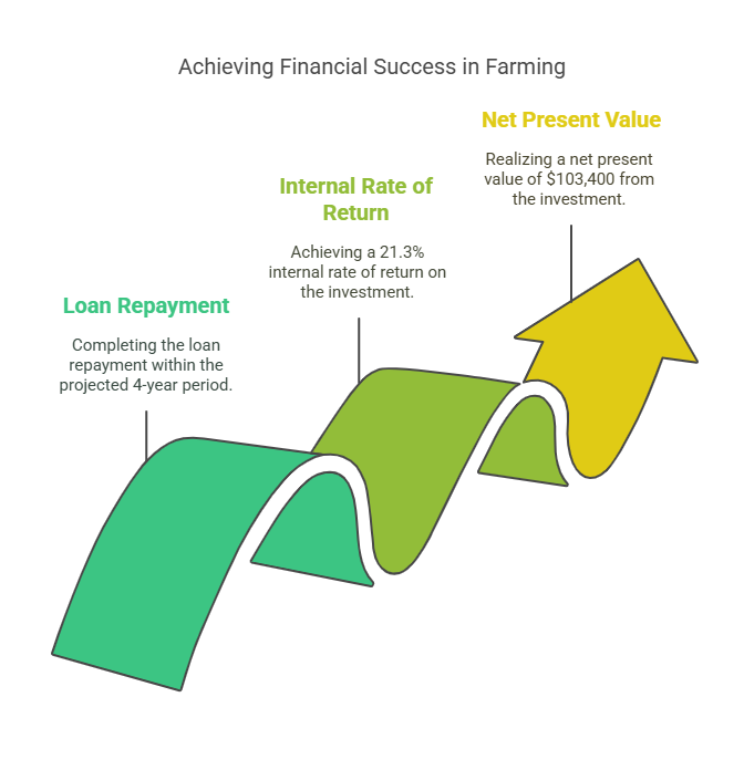 - Yield improvements: The 38% increase in crop yield directly contributed about $15,800 in additional revenue.