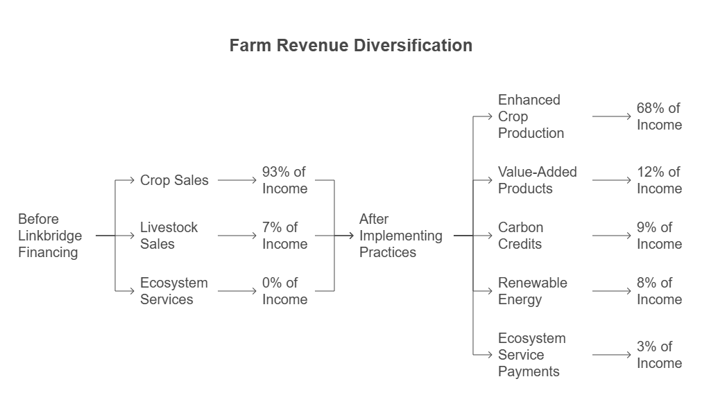 This case study examines how Linkbridge, a Zambian financial technology company, has pioneered innovative financing solutions that enable farmers to transition from conventional farming to carbon-negative agricultural practices. Through targeted investments in renewable energy, regenerative farming techniques, and technology adoption, Linkbridge has helped create a new paradigm for sustainable agriculture in Sub-Saharan Africa. Drawing on real-world data from our client portfolio, this report demonstrates how smart financing can simultaneously improve farm productivity, increase farmer incomes, and create significant carbon sequestration benefits.