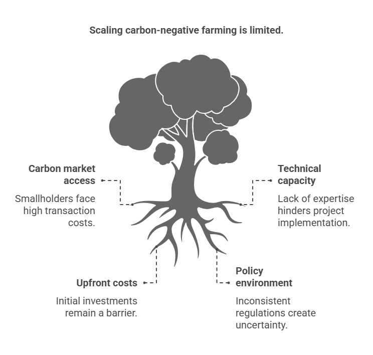 - Financial barriers: Limited access to capital prevents farmers from investing in sustainable technologies