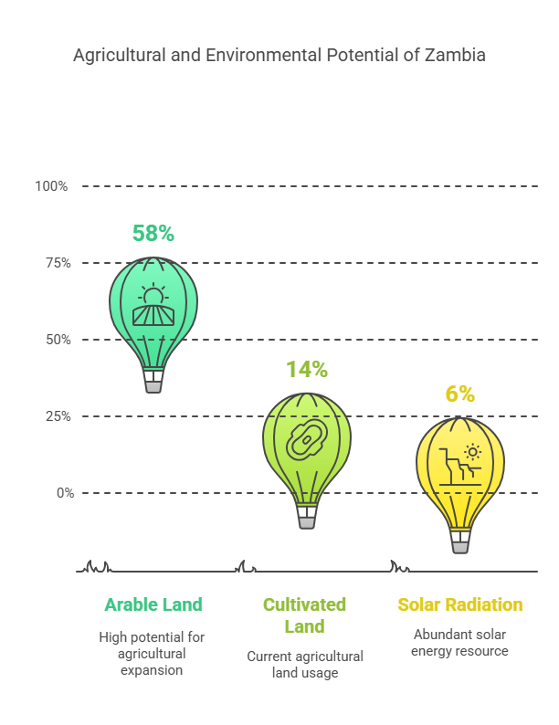 - 58% of Zambia’s land is arable, yet only 14% is currently cultivated