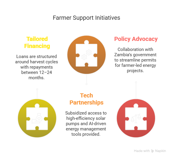 - Policy Advocacy: Collaborating with Zambia’s government to streamline permits for farmer-led energy projects.